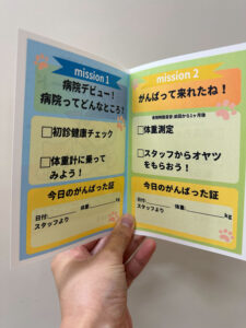 今年度から、初めて来院される2歳までのわんちゃん・ねこちゃんを対象に「ならし通院ミッション」を始めました!